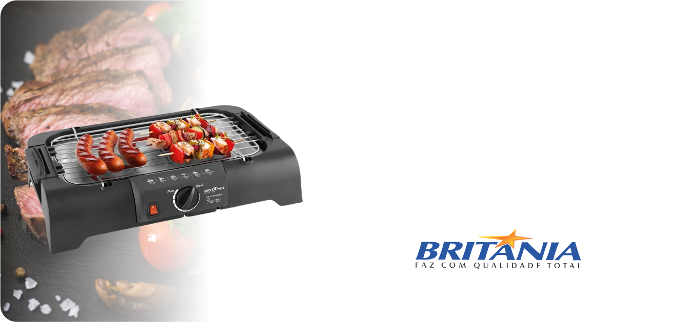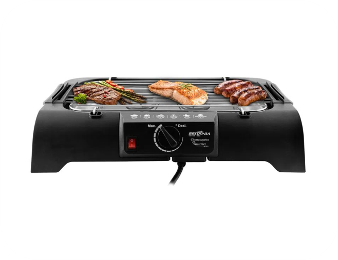 Seja a sensação do churrasco de São João com a Churrasqueira Elétrica Britânia Gourmet! Grelha em aço inox, 1200W.